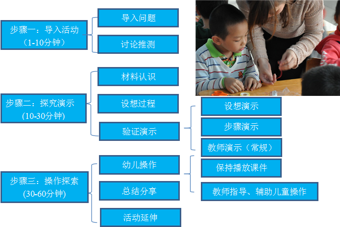 2、活动进行——教师示范操作添加操作的常规,操作盘用具需有暗示图示;