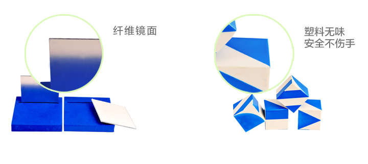 镜子魔方利用镜面反射成像的原理,和物、像对称的特点,通过对图形方块的组合,变化出无比丰富的对称图案。 |