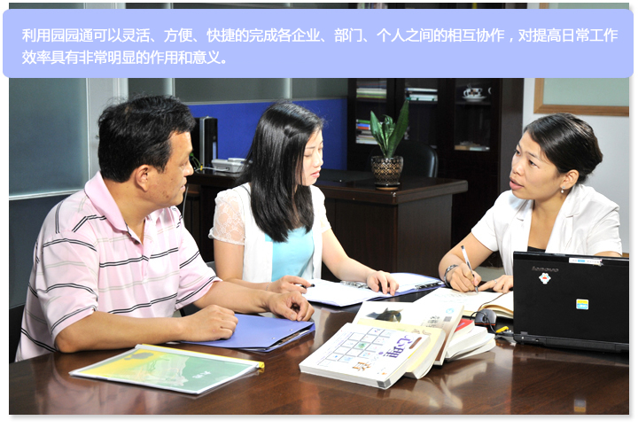 答:园园通吸收了EAI(单位应用集成)和EIP(单位信息门户)的主要思想,着力为用户实现一个集内部通讯、信息发布、协同工作、知识管理、辅助办公为一体的协同办公体系。可以综合处理各种格式的语音、数据、文字、图像等文件。
