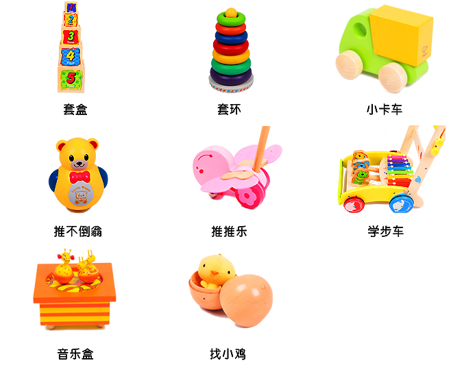 1、产品丰富、系统,共计31种,符合0.5-1岁幼儿身心发展特点