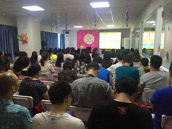 大地总部指派一名早教专员和我们中心进行对接,指导老师练课、试课、到最后的正式上课,非常细致,当老师通过一个月的练习,真正要面向家长进行上课时,我又心中很忐忑,不知家长是否接受力地早教课程理念,如何向家长推广,又一次让我陷入难题,中心早教专员罗老师知道后,建议开展一次《早教课程家长说明会》,并耐心给我指导建议,大到课程讲解PPT,讲稿,小到会场布置,桌椅摆放,再到人员如何规划,全部细细帮我做分析,落实,因此,一场完美的说明会,现场家长反响热烈,现场150多名家长,有95%家长都报读了自己喜欢的课程,可谓是一炮打响了我们中心的知名度,也为后继的招生宣传打下了良好的基础。